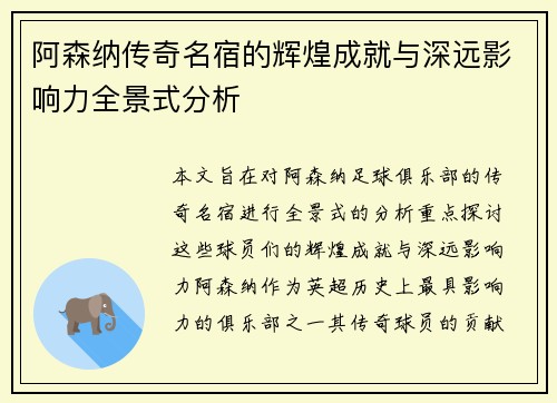 阿森纳传奇名宿的辉煌成就与深远影响力全景式分析